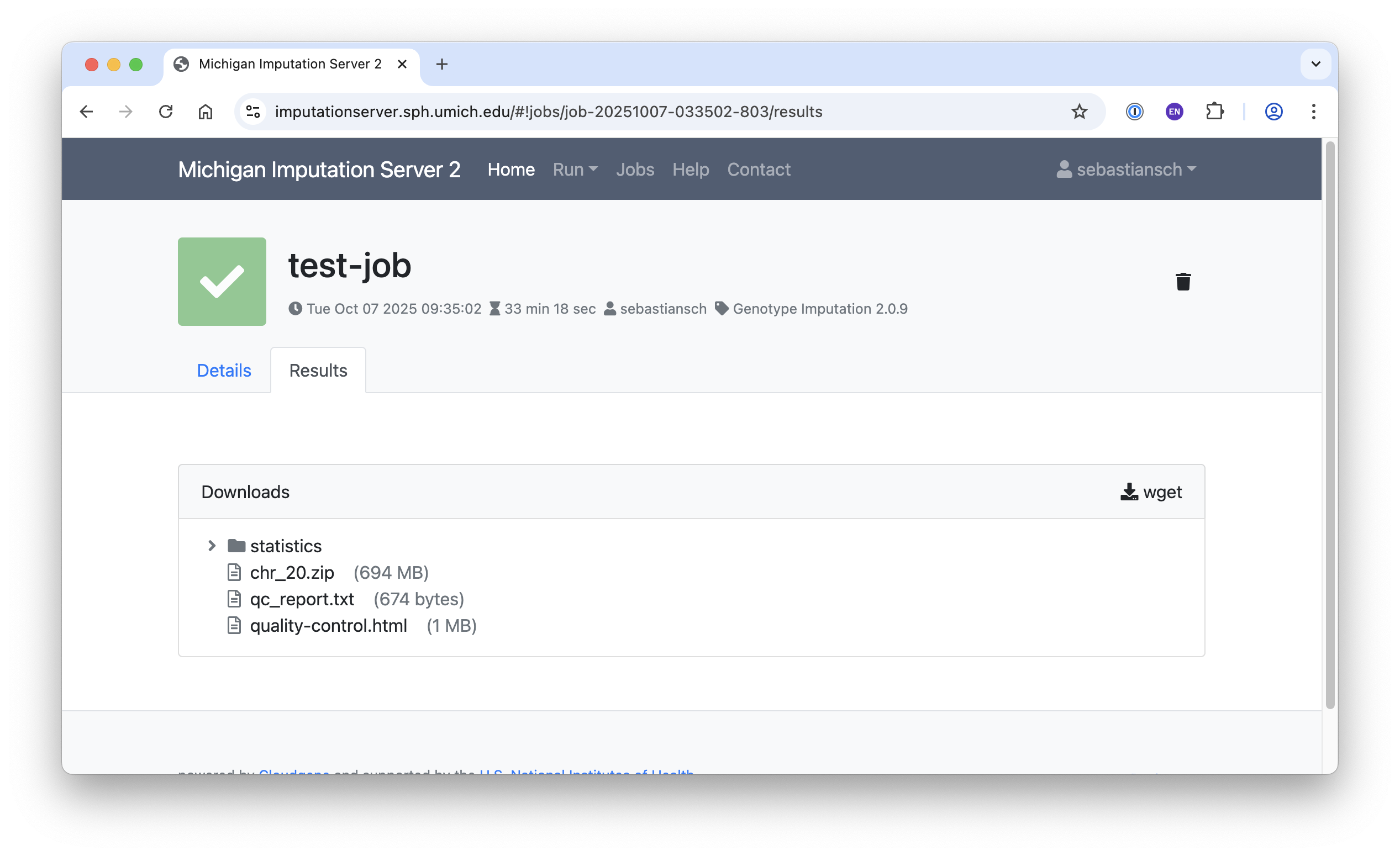 Once your job is complete, you will receive a notification. You can then download your results in one of the following ways: