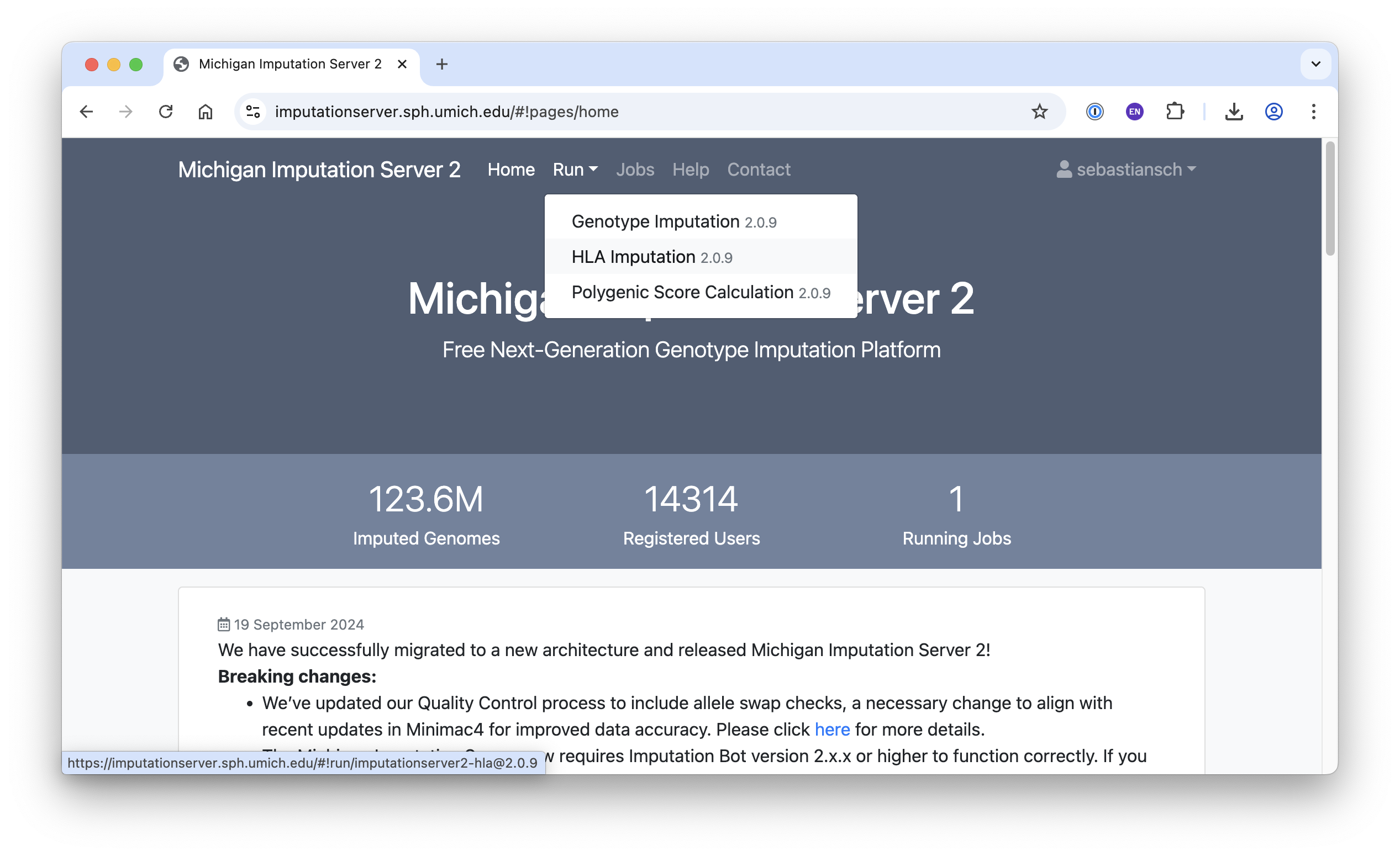 The Michigan Imputation Server offers several applications, including Genotype Imputation, HLA Imputation, and Polygenic Score Calculation. In this tutorial, we focus on the Genotype Imputation app.