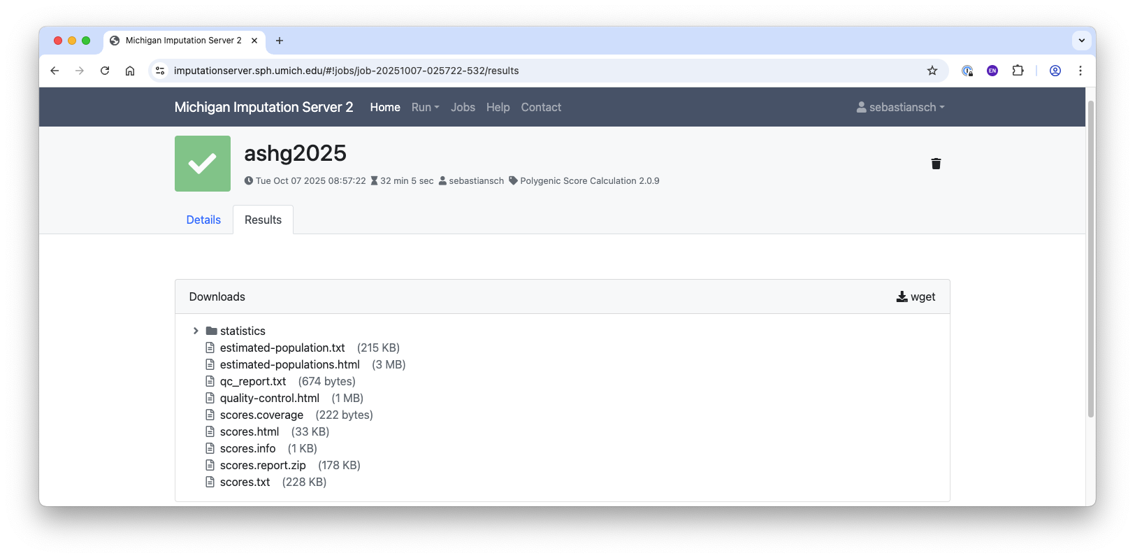 Once your job is complete, you will receive a notification. You can then download your results in one of the following ways:
