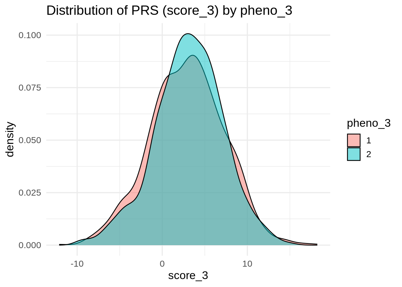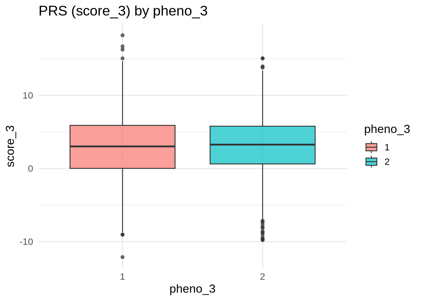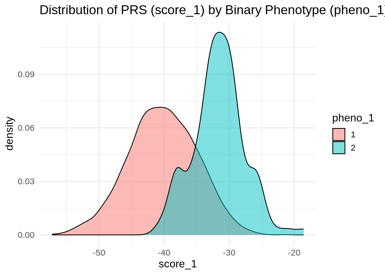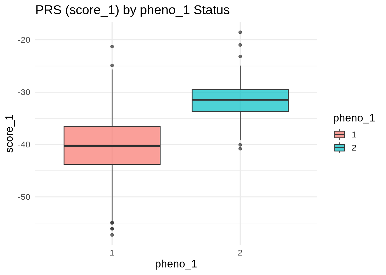 title = "Distribution of PRS (score_1) by Binary Phenotype (pheno_1)",